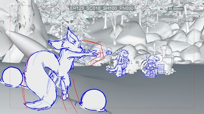 So I've finally started feeling a bit Christmas-y. Thought I'd post some panels from the Digby Christmas 2-part special that I boarded a year ago, but will finally be on TV Next month. Below is an extract from part one. A bit of a snowball fight.